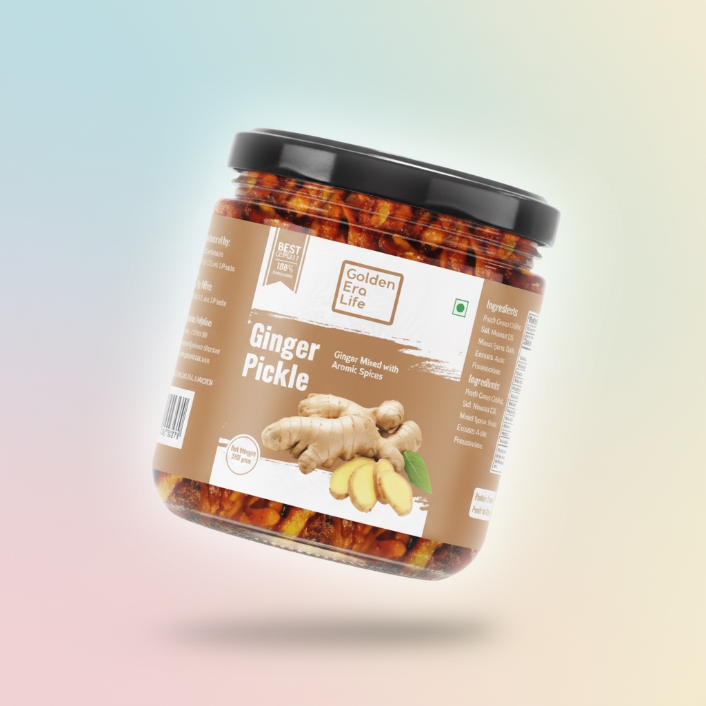 “ताज़ा अदरक का घरेलू अचार – कच्ची घानी सरसों के तेल में डूबा हुआ, मसालों का धमाका! सर्दियों का सबसे पसंदीदा साथी – एक चम्मच खाइए और नानी के हाथों का स्वाद याद आ जाएगा! बिना किसी प्रिज़र्वेटिव के, शुद्ध देसी स्वाद।”