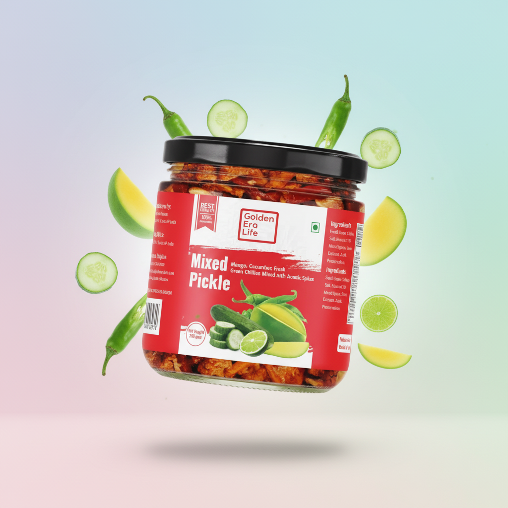 Dive into the legendary taste of Punjabi Mixed Pickle – the one jar that rules every Punjabi kitchen! Hand-cut chunks of raw mango, lemon, carrot, cauliflower, green chilli, lotus stem (bhee), karonda, and tender ginger are blended with a powerful, rustic masala mix (cracked rai, methi, saunf, kalonji, ajwain, heaps of lahsun, red chilli, turmeric, and hing) and then slow-matured in 100% pure kachi ghani cold-pressed mustard oil under the sun for weeks. The result? A dark, oily, super-spicy, garlicky explosion of flavors and textures in every single bite!