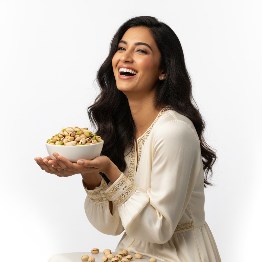 “एक पिस्ता खाओ – मुँह में हरी-हरी खुशबू, दिल में पार्टी शुरू! मम्मी बोलती हैं “बच्चों को खिलाओ, दिमाग तेज होगा”, हम बोलते हैं “हमें खिलाओ, मूड ठीक हो जाएगा”! मेहमान आए तो प्लेट में पिस्ता रखो – बातें अपने आप लम्बी हो जाएँगी और तारीफें कभी खत्म नहीं होंगी!”