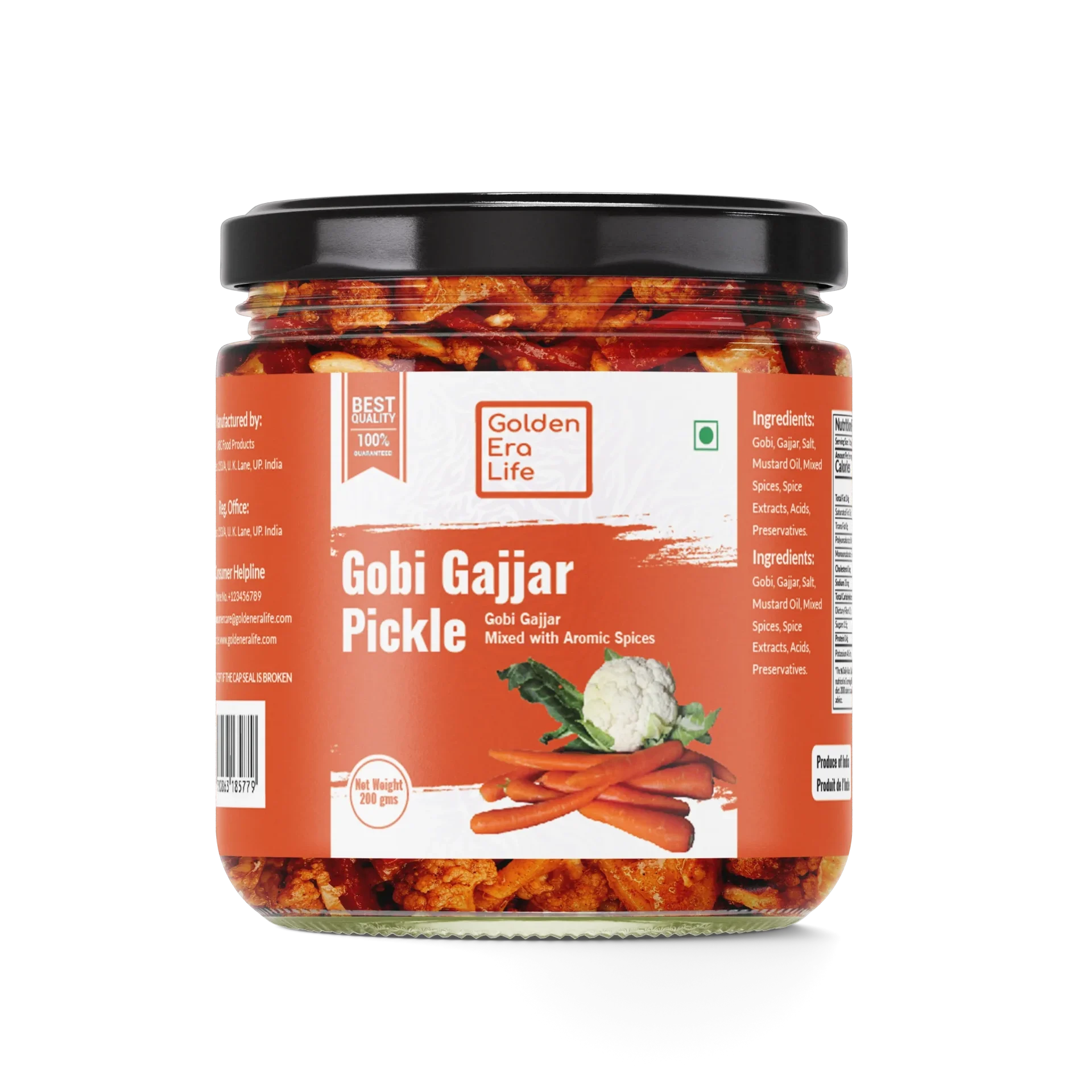 Bring the authentic taste of Punjab’s winter special straight to your plate with our Homestyle Gobi-Gajar-Shalgam Pickle! Fresh, hand-cut cauliflower florets, bright orange carrots, and juicy turnips are mixed with traditional Punjabi masala – roasted mustard seeds, methi, saunf, ajwain, heeng, red chilli, and turmeric – then matured in 100% pure kachi ghani (cold-pressed) mustard oil for that unmistakable sharp, tangy, and crunchy bite.
